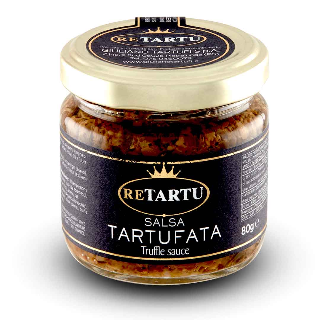 Pasta truflowa Re Tartù powstała z połączenia najwyższej jakości grzybów z dodatkiem czarnej trufli letniej, oliwek i oliwy extra virgin. Zamknięty w słoiku bogaty aromat i pełny umami smak to duma słynącego z truflowych produktów producenta Re Tartù, który w restauracji w Asyżu serwuje dania opierające się właśnie na trufli.