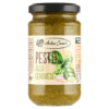 Zielone Pesto w słoiku przygotowanym przez włoskiego producenta znajdziesz oryginalną wersję pesto z Genui, czyli esencjonalne połączenie bazylii z dodatkiem orzechów nerkowca, oliwy oraz mieszanki tartych serów.