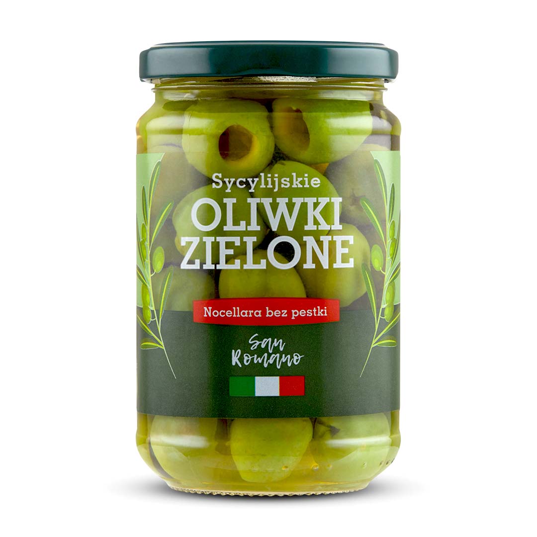 Składniki: oliwki z sycylijskiej odmiany Nocellara del Belice, sól, woda, regulator kwasowości: kwas mlekowy 0,11 %